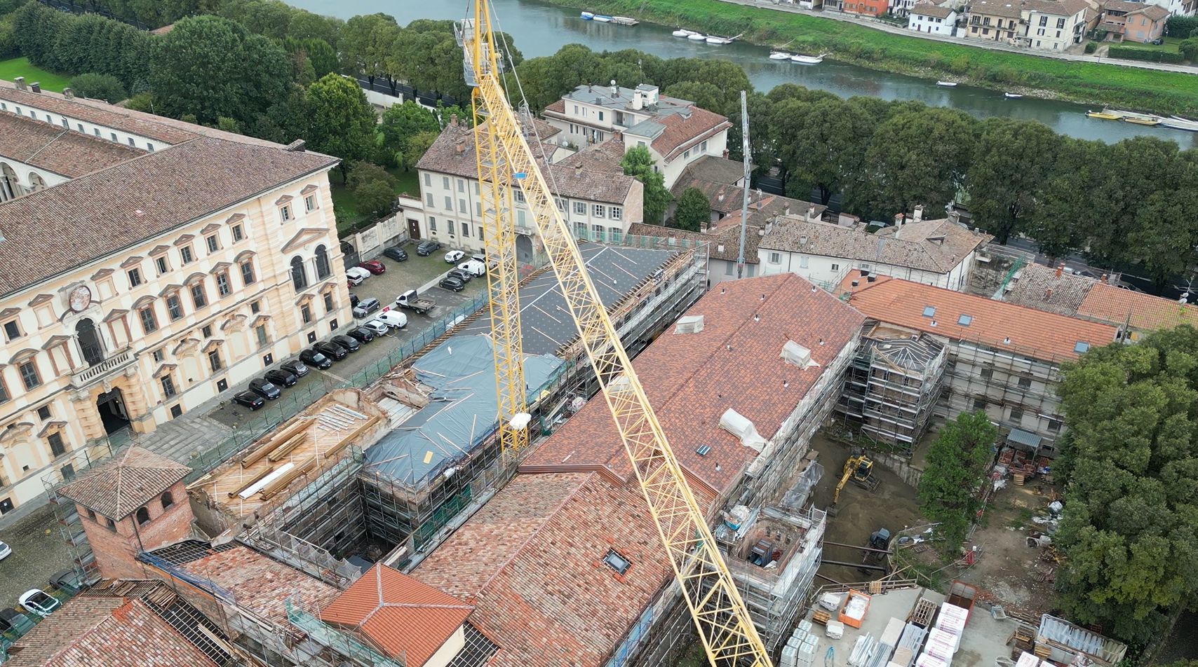 In the heart of Pavia, just a few steps from the Ponte Coperto, the regeneration of a unique complex is moving forward: 6 buildings dating from the 1500s to the 1900s, featuring a 1400s tower.